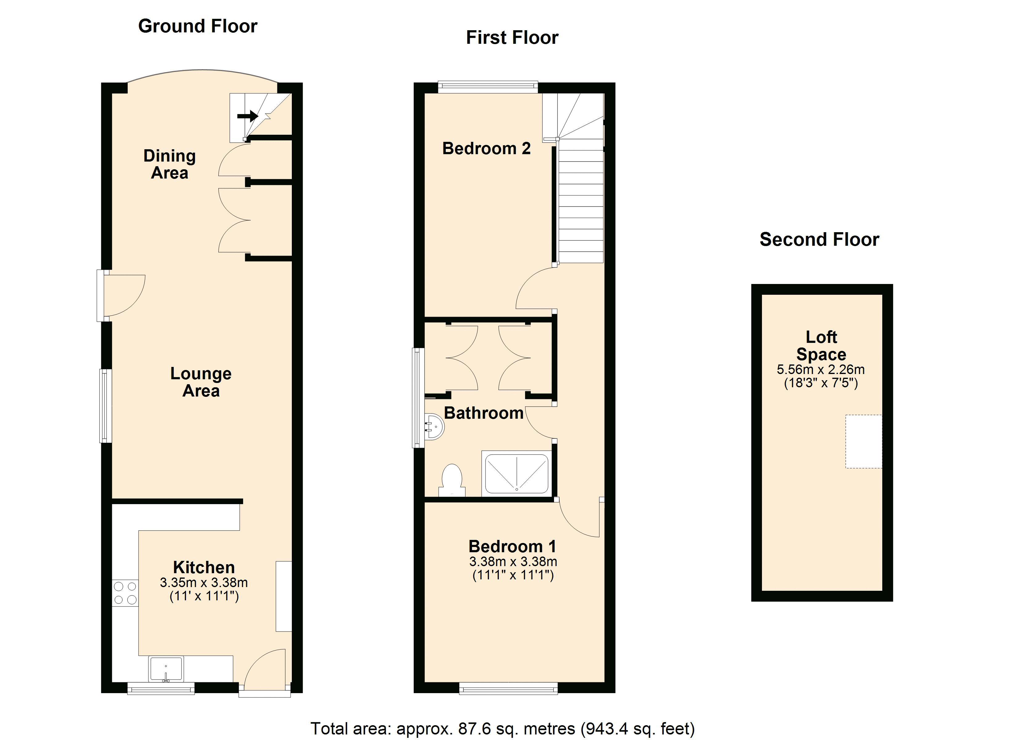 Doors to all rooms, loft hatch leading to loft room, fully boarded with light & power. Can be used as storage or a quirky additional space