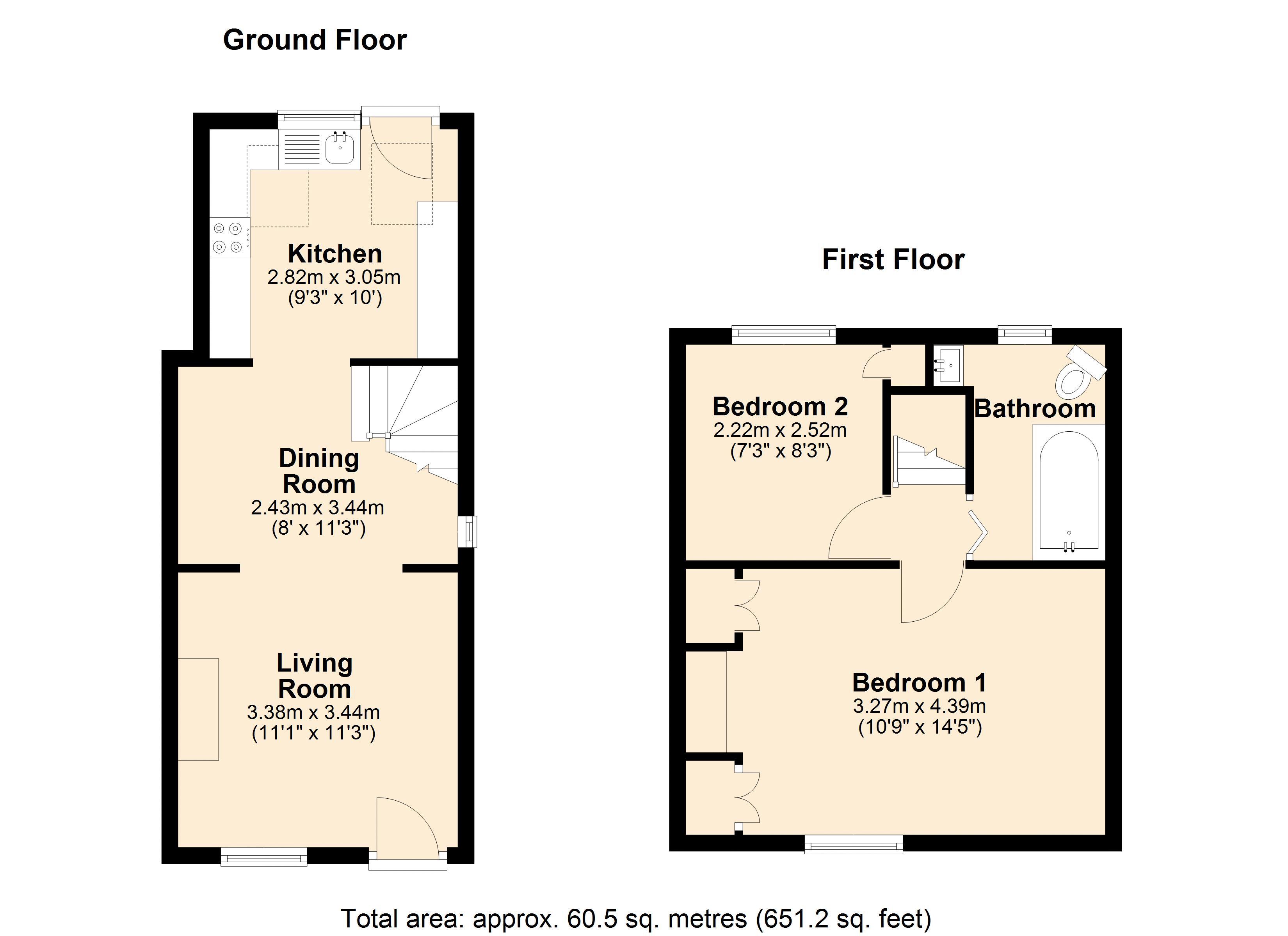 1 This charming two bedroom Victorian cottage is offered to the market with no onward chain and presents an excellent opportunity for a range of buyers. The accommodation is arranged over two floors, with the ground floor comprising a living room, separate dining room and kitchen. To the first floor are two bedrooms and a family bathroom. Externally, the property benefits from a rear garden which is mainly laid to lawn, providing a pleasant outdoor space. To the front of the cottage there is driveway parking for one vehicle.