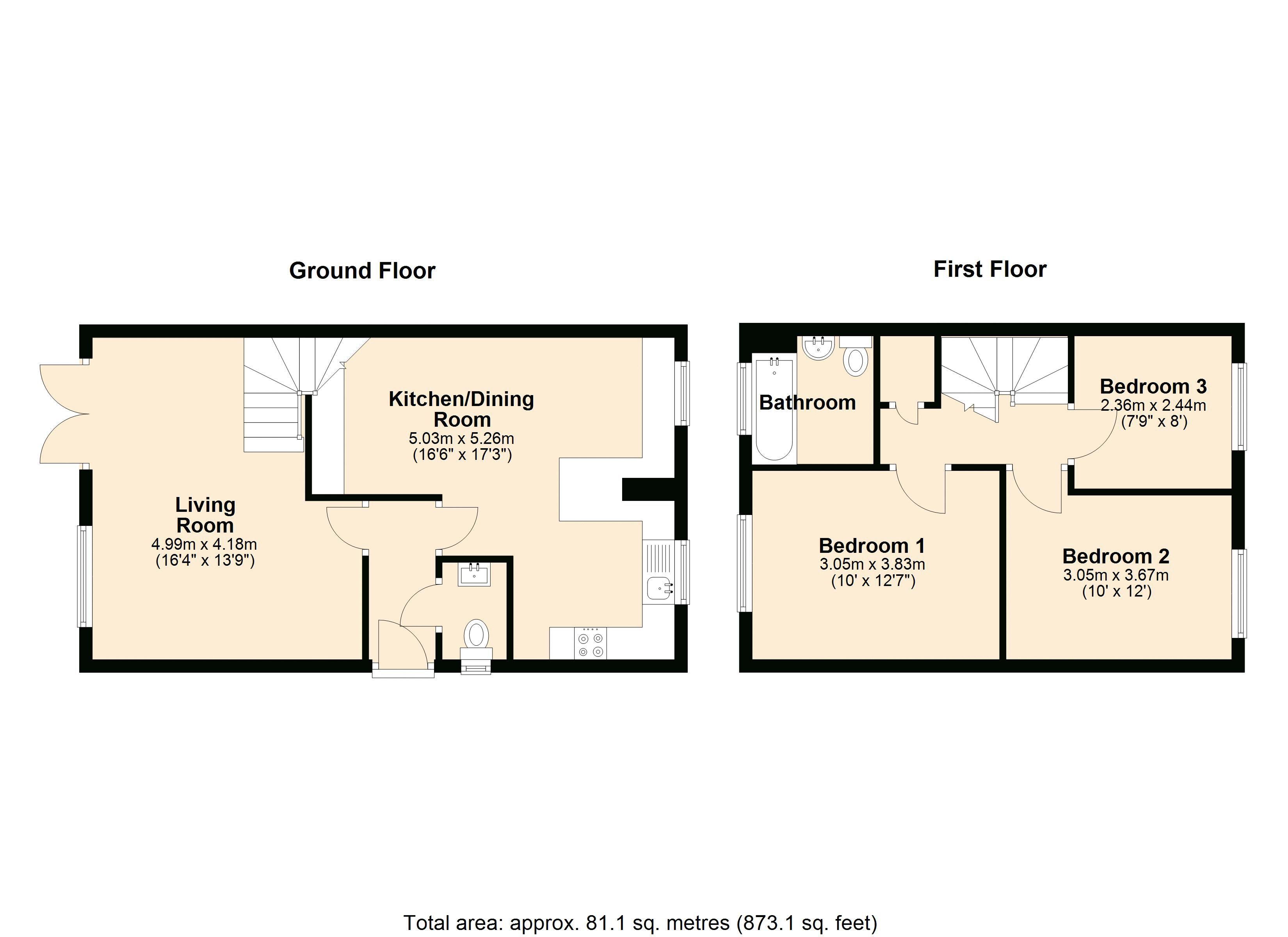 Upstairs, the property offers three well-proportioned bedrooms, all served by a contemporary family bathroom.