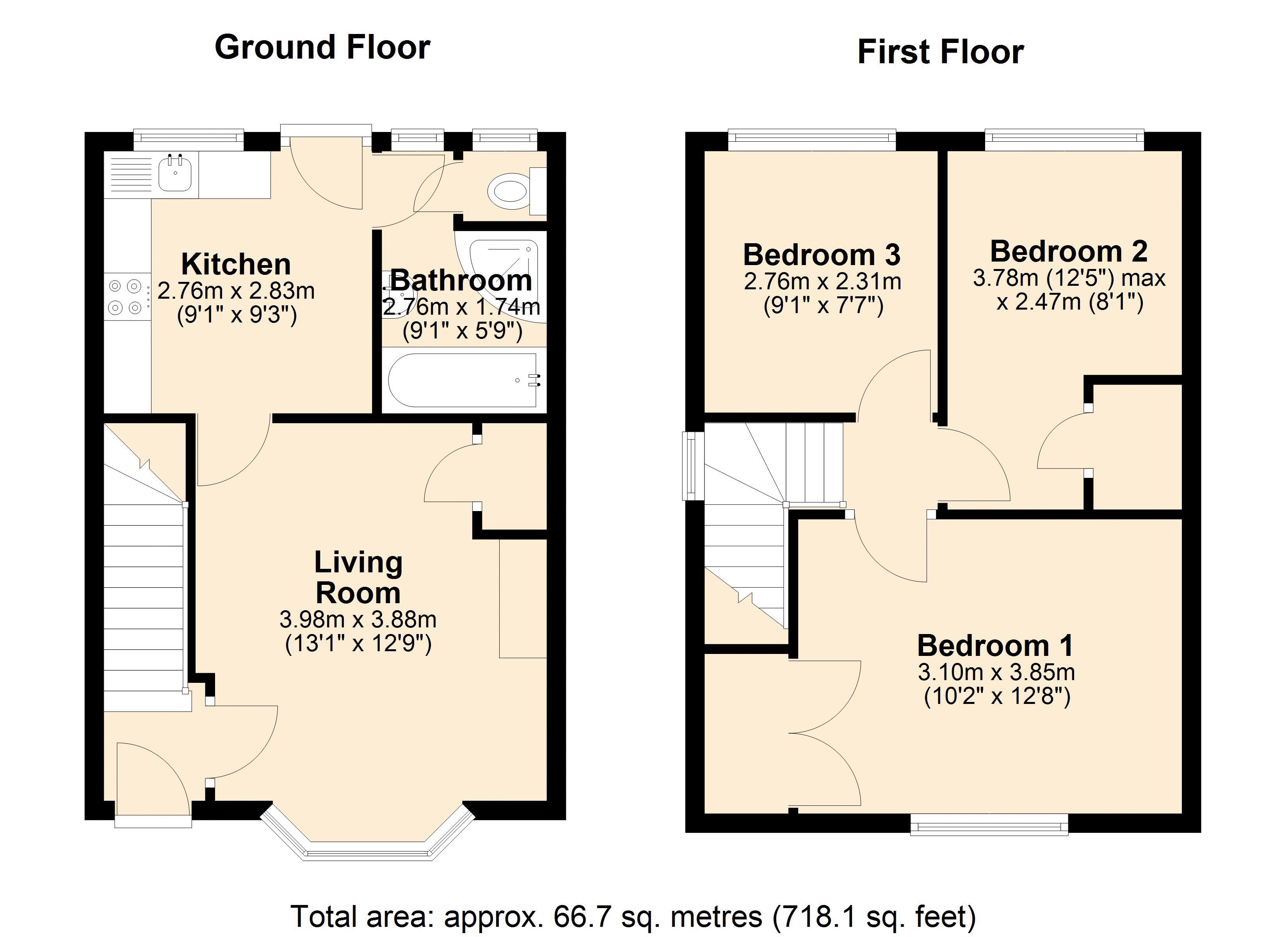 Upstairs, you’ll find three double bedrooms, including a superb main bedroom with large built-in wardrobes.