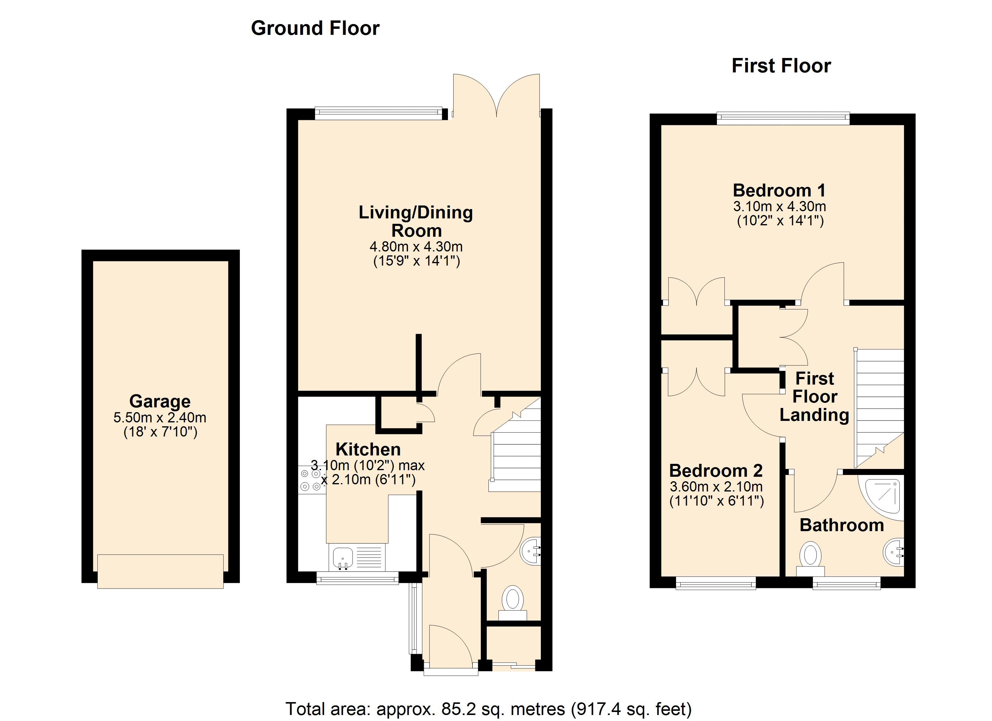 Upstairs are two generous double bedrooms, both with built-in wardrobes, and a stylish family bathroom. Additional benefits include a garage and driveway, making this immaculately maintained riverside home a rare and highly desirable opportunity.